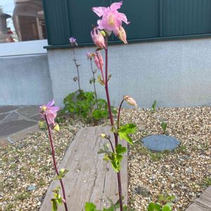 ピンクのオダマキです。 種がたくさん取れるので増えていってます😆昔からある種類みたいですが、透明感のあるオダマキでお気に入りです✨