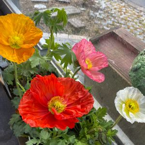 寒い中、アイスランドポピーを買いました✨ 雨の中、気分が上がる色です😆