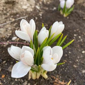 見たことない花がこんにちは😃してました✨名前教えてください。 クロッカスと同じ時期に咲いています。