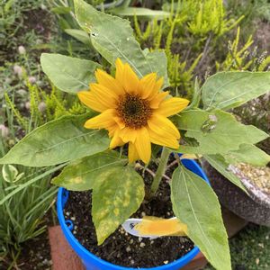 3歳次男の保育園の教材のミニヒマワリが咲きました🌻 次男は花が大好きで(特に黄色の) 毎日水をあげては咲いたかな?と楽しみにしていました☺️