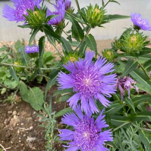 西日の強い北花壇でも病気にかからず元気に咲くストケシア。 買って良かったと心から思った😄