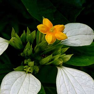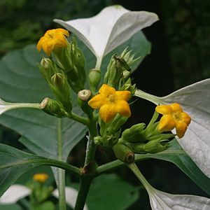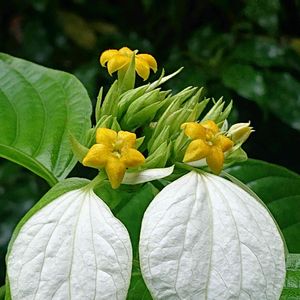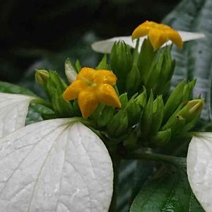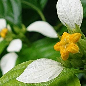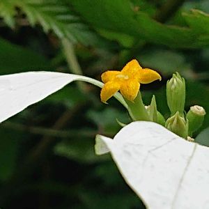 ヒロハコンロンカ 広葉崑崙花 アカネ科 本州(静岡、三重県、和歌山県)、四国、九州、台湾、中国 山地や渓流沿いの明るい場所 落葉低木 牧野博士命名植物 萼片は5枚でその一つが残り、白く広がり花弁状になる 花は黄色、花弁は5枚、雄蕊5本、雌蕊1本、雌蕊の柱頭が2つに割れてますので2心皮性 牧野植物園 7/9 こんにちは 白い花弁のような萼片が目立ってます🤍💚 花弁は黄色 ハンゲショウのように昆虫を誘き寄せるのですかとの質問に、それは人間が言ってる事ですので、花に聞いて見ないとね⁉️との事でしたよ🤍🥰