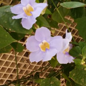 今日の癒しのひととき🌿 ムラサキヤハズカズラ(ツンベルギア) やっぱり可愛い、上品な紫と黄色 一気に咲いてます、開花は2、3日くらいかな、繊細で触れたらあっという間にポロッと落ちる…儚いですがこの美しい一瞬を見逃さないように写真にも納めます✨
