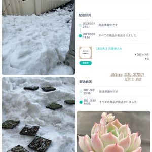2021.3.23 Tue 15:36 2階のお部屋で管理してた 葉挿しっ子ちゃん 昨年の夏に葉挿しで大きくなった子たち 一部、秋~冬にかけて葉挿しをして 少し大きくなったから マーガレットレッピン混ざってる🌱 天気もいいし、気温も暖かいから お外に出すのに雪を崩した シャーベット状だったり ちょっと硬い氷みたいのもありで スコップ持った手の平 若干ね…痛い痛いよ~😂😂😭 iPhone 家の中で放置してたら 多肉アンさんの多肉ちゃん 発送されたとメール届いてました💌💭 リエール苗より発送が早いヾ(●´∇`●)ノ 早かったら明後日(木)に到着かな🏡