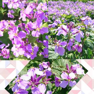 『今日のお花』 🍀💜ショカツサイ(ムラサキハナナ)💜🍀 諸葛菜(紫花菜) 和名 オオアラセイトウ(大紫羅欄花) 別名 ハナダイコン(花大根) 昨年12番目(百々葉)の孫、4歳のお誕生日に淡路島へ行った記念写真です。