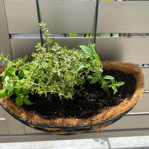 ハンギングバスケットを買ってきました。 肝心の植える苗を買いそびれて、慌ててハーブを3種類見繕ってきて植えました。 風が強くて寄っちゃってる あと2つバスケットあるけど、週末までは家の中で待機