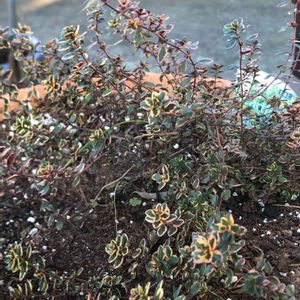 こんばんは🌃 12月に購入した 🌿ゴールデンクイーンタイム🌿 すっかり冬仕様になりました。 お店でも外管理だったので、12月までが冬仕様にならないくらい暖かかったということですね。 ハーブなので良い香りしてますよ~💓 変化もお花も可愛い葉も、香りまで楽しめるとは☺️なんて良い子なんでしょう!
