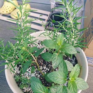 今日はハーブの日! 昨日の戦利品の立派なローズマリーと、キャンディミントを寄せ植えに。 写真では写ってないところに、そっとセダム忍ばせてます…(^_^;) ローズマリーも最初カット苗から増やそうと頑張ってたけど、やはり家では皆さんサヨウナラに( ´•̥̥̥ω•̥̥̥`) この苗は頑張って欲しいなぁ