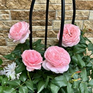 バラ🌹ナエマ 今年は花数が増えました🙌 まつおえんげいの松尾さんのyoutubeをよく見るようになって、昨年沢山シュートを出すことができました⚽️横に誘引も出来て、ちょっと嬉しい😊でも大きくなりすぎるので、来年また誘引方法を変えてみようかな。いつまで経っても仕立て方の正解がわからにゃい💦 今年は(も?)雨が多くて、できるだけ✂️してお家でも楽しみました。 フルーティーで本当にいい香りのするバラです🥰🍑 ちなみに、GSで縦長と横長の写真を混ぜて投稿する方法がわからず苦労しました😅出来ないのかな?
