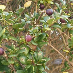 多分イヌマキかなんかの実、刈り込んだ為なのか今年はまばらな感じ