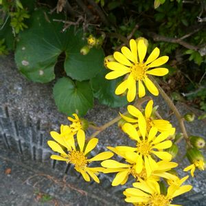 11/10石蕗:ツワブキの花が雨上がり開きだしてます