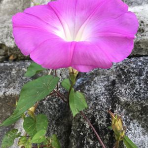 1月❸【朝顔】*浦添市前田 ピンク色のアサガオ… 石垣の間から、ひょっこりはん…♪♪♪ 🌱ヒルガオ科🌱サツマイモ属🌱 2020.1.2 am 9:37 ⛅️