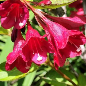 赤いウツギ咲き出しました