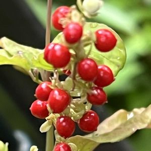 おはようございます(*^^*)☁️ ①②我が家のジュズサンゴの実と花 いつのまにか色づいてました🔴✨零れ種が数え切れないほど…❤️ ③近くの山の秘密の場所で ヒペリカムが色づいてました❣️ 散歩道の見つけた、オージープランツでいっぱいのお庭⊹₊˚ꕤ˚₊⊹ ④銅葉と緑色の葉が印象的な 真っ赤なカンナ ⑤バーケア リンフォリア? ダイナミックな花が多い中で小さな白い花が可愛いらしく咲いていました₊˚✿𑁍.ೃ࿔*:・