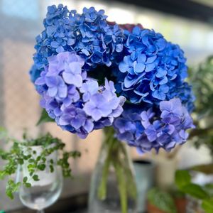 今日はまたまた暑くなりました 庭の紫陽花たちもそろそろ見頃を過ぎてきました 綺麗な時に撮ってた濃いブルーのラブリーデイ それから隣に並んで万華鏡と競演してました ラブリーデイは暑さで焼けたり終わりに近づいたのをカットしました 上手くドライになったら良いんだけどね 万華鏡さんは涼しい場所へ移動して長く咲いてもらいたい