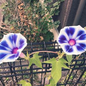 おはようございます😃朝顔第三弾です✨ 2つ、いっぺんに咲いてくれました😊