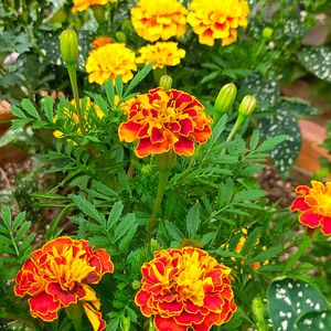 寄植えメンテナンス 大鉢に植えていた ニチニチソウやガイラルディアが 枯れてしまったので マリーゴールドに変えてみました。 鮮やかで良い感じです🧡💛