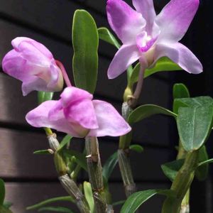 セッコク 長生蘭 「白綾」さん 2輪とも開花しました😊🌸 蕾の時はもう少し紅っぽい色がありましたが、開いてみると桜色より淡〜い霞のよう。 香りも爽やかで仄かな石鹸みたい(*´¨`*) 葉の綾が矢(バルブ)🌱によって違うのは、オールシーズン日照がバッチリあった方がクッキリ出るようだと先達のblogにありました。 この品種は葉も魅力なのでお外が良いのかもね。吊るして育ててみたい気もする。