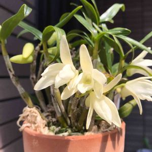 我が家に帰ったら、咲きそうだったセッコクが開いていました! 長生蘭 「金石」さん 透き通るような白花で仄かに石鹸みたいな爽やかな香りがします。 蕾なかなか成長しないんだよ!3月6日に投稿したのがやっとだよ! まだ硬い蕾かなりあるのにあまり動きがないわ。 新しい矢もピンピンにょきにょきしてきたぞ。 次々咲くのかなぁこれ🤔
