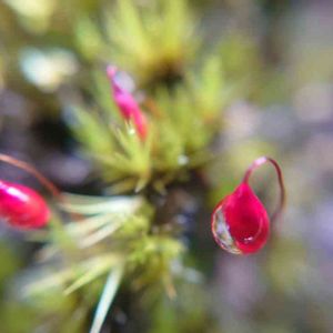 苔の名前はわからないけど、 蒴が真っ赤なのが(〃∀〃)♡ 前日降った雨粒をつけた姿が可愛い❤
