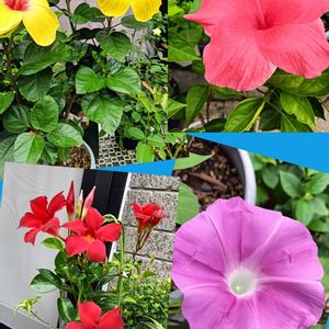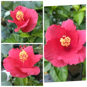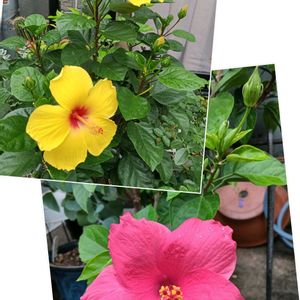 今朝の花たちです🥰 ハイビスカス🌺💛 朝顔 サンパラソル