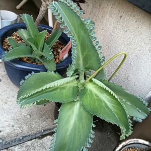 子宝草が倒れそうに 慌てて支え棒を😂 大きくなって頭が重いです、 花が咲くみたいですが何年かかる?