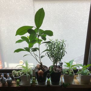 今日の窓辺 #ガジュマル #テトラゴナ #桃源郷 #オリヅルラン #サボテン #子宝弁慶草 #観葉植物 #多肉植物