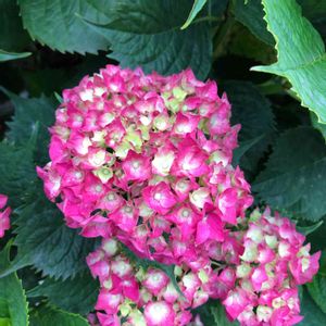 玄関先の紫陽花が色づき始めた やっぽり我が家の紫陽花は赤系だ ご近所は青系 土がアルカリか酸性かで変わるみたいだね