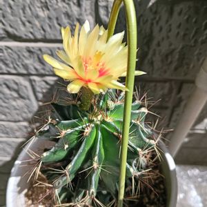 春に余りに大きくなってしまったので胴切りしたサボテンに花が咲きました💛