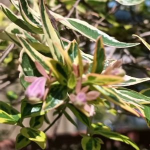 郵便受けの上に置いた アベリア、ホープレーズ 咲き始めました😘