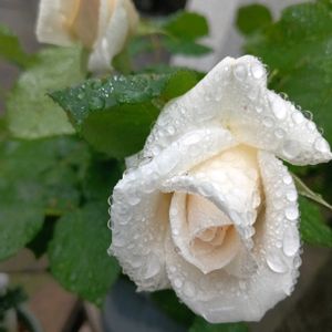 部屋の前で咲いてる 薔薇 シロタエです🤗