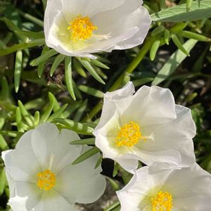 おはようございます(*´∀`)♪ 朝からお天気に恵まれマツバボタンが元気に咲いています♡♡♡🌿 今日は白花を🤳です😍 春から秋まで良く咲く一日花ですが花数が多く途切れることなく咲き続けて可愛いです〜🤗🎶 花言葉『無邪気』『可憐』 今日も穏やかな一日になりますように。。。