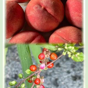 おはようございます(*´∀`)♪ 今日は大きな桃も小さな桃(実)も同じ色に見えています(笑) 👴の友人からご実家の山形から届いた桃🍑を頂きました😋😋😋 ⚪️🔴ジュズサンゴ🔴⚪️ ヤマゴボウ科の数珠珊瑚📿名前は実が数珠📿のように連なることに由来 今年も白い小さな花から実がなり楽しませてくれています🎵💃 こぼれ種からも生えたのか今年は2ヶ所に増えています🤗🎶 花言葉『ひたむきな姿勢』次々と花を咲かせたり実が白から赤へと徐々に変わっていく姿から 『移り気』白からピンク 紅へと実の色が変わっていくことから 今日も穏やかな一日になりますように。。。