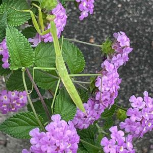 おはようございます(*´∀`)♪ カマキリ嫌いな方ごめんなさい🙇♀️⤵︎ カマキリ君も🏷ピンクワールドへようこそ 🙏 庭でカマキリが沢山孵っていてバッタなど害虫を捕食してくれて助かっています〜 🌸コバノランタナ(小葉のランタナ) 春から秋まで長い間咲いています🌸 ランタナの仲間ですが花色の変化はありません 名前の通り葉が小さくツル性で枝がよく伸びるところが特徴です 花言葉『厳格』 今日も穏やかな一日になりますように。。。