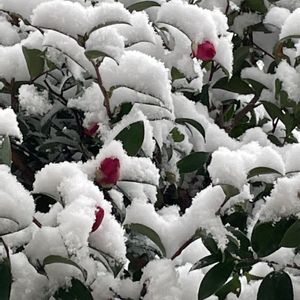 おはようございます(*ˊ˘ˋ*)♪ 今朝初積雪にびっくりしました‼️ 今も降り続いています*❄️·̩͙ 縁側 窓 から🤳 ①②③サザンカ ④ローズマリー ⑤イロハモミジ 豪雪地帯の皆様には如何許りかとお察し致します🙇♀️⤵︎ どうぞご安全に⚠️ くれぐれもお気をつけくださいね❤🍀︎
