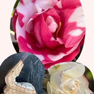 こんにちは(*ˊ˘ˋ*)♪ ⤴️マーブル咲の椿 2輪目が咲いてます🌺⸜(*˙꒳˙*)⸝ まだまだ色んな模様の蕾が楽しみ😆✨ 2、3枚目も🌺 ↘️バラ(ニコル) 四季咲き ピンク色のピコティが微かに出てるだけの冬バージョン꙳⋆(lllᵔ⩌ᵔlll)౨♪ 咲いてくれるだけで感謝🙏✨ 蕾もボツボツ😆🌟✨ 4、5枚目も🌹 穏やかな日が続きますように🍀*゜