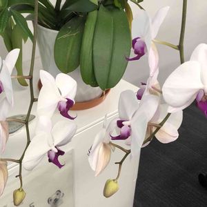 会社で育てている胡蝶蘭その2。 花が重くて枝垂れています😅