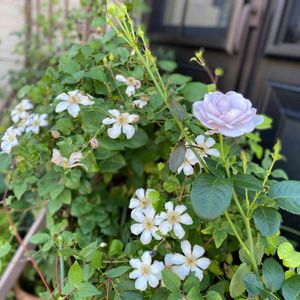 ミニバラ以外では、我家で初開花の紫雲。 ピンクに近いこの紫色がだいすき❣️ 大好きだった禅が今年は弱ってしまって、かなり心配です😰💦