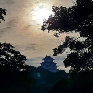 国宝 姫路城 𓂃𓂂𖡼.𖤣𖥧𓈒◌܀𖥧𖧧 ˒˒. 朝陽🌄が右側からあたり 木々の緑が一段と輝き✨ 清々しいです😄