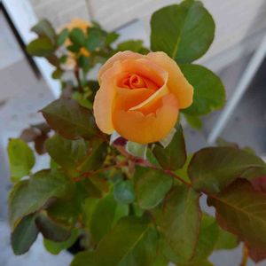 これは先月の写真…ちょっと遅れてお披露目ですが😳 母の日にプレゼントした3種類のバラのひとつ【ハニーブーケ】が咲きました! 本当は新苗なので秋まではピンチしなきゃいけないのですが、見落としていたのが生長していて見てみたいねってことで咲かせてしまいました。笑 見本では中心がオレンジでしたがこれから株が育っていくうちに、または秋咲きの時にそうなるのかなと楽しみです。 今はシュートもぴゅんぴゅん出ていて、うどん粉にも強くて葉っぱがもりもり😂 若葉に赤が差すのも可愛い〜 黄色のバラは母の注文でしたが気持ちが晴れますね☀️ ただ少し花もちは良くない模様😅 次々咲いて香ってくれるようにお世話頑張りま〜す (私のものになっている…笑)