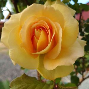蜂蜜みたいなお色のハニーブーケ🐝🍯 咲き始めました💛💛 オレンジ色がのった淡い黄色 寒い頃はオレンジが強くなります。 💛ハニーブーケ(Honey Bouquet)💛 四季咲き フロリパンダ(Fだが、比較的大輪で1輪もしくは2輪位で咲く) フルーツ微香 花10cm平咲 樹高1.2m 幅1m 半直立性で、葉色は濃 樹勢 普通 暑さ強く寒さ少し苦手 耐病性 普通 鉢、花壇向き 別名R.`Jacyimp' (Friesensöhne ☓ 実生) ☓ Amber Queen 1999年発表、作出 Dr.Keith W.Zar(アメリカ)