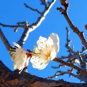 こんにちは。 昨日のお花 ウメ 枯れ木に見えていた梅の木が1日中降った雨の後の晴天に、一気に咲きました。強い風ですぐに散りそうです。 仲良しリレー I love the Earth 純白マニア に参加させて下さいね。