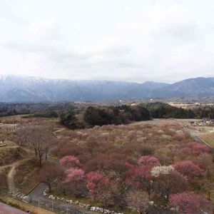 2023.3.4 雪の残る藤原岳バックのいなべ市梅林 まだ2.3分咲き