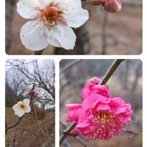 散歩途中の公園に咲く紅白の梅。花の少ない時期なので、咲いているのを見ると嬉しくなります😊