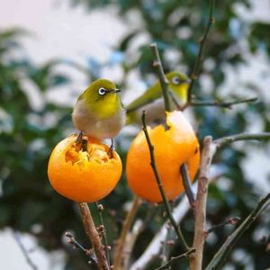 梅の木に来たメジロ。 梅はまだ蕾です。我が家の梅は咲くのが遅いです。