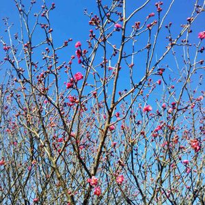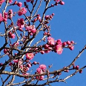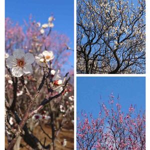 いつもの公園。青空バックに紅白の梅が綺麗でした。