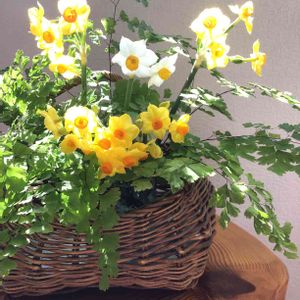 🌿 アジアンタム 🌿 地植えで、いっぱい あったので ちょっと 所々 切りました。 で、黄色の 房咲き 水仙と 合わせてみました。🌼🌼🌼 月曜日🌸 新しい週の 始まりですね🌱🌱