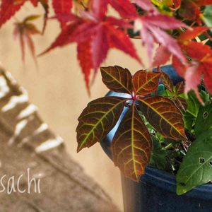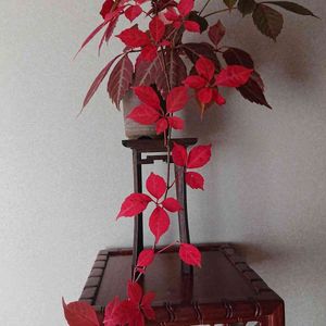 おはようございます☀ ✨アメリカヅタ✨ そんなに寒くないのに こんなに色付きました 葉が薄いので どうなるのかなぁと楽しみに していました🍁 ずっとこのままでいてくれるといいのですが😊 一緒に植えたオリヅルランはこれだけが 斑入りで あと沢山あるのは全部緑に なってしまいました。 さあ! 11月☆ですね✨✨✨