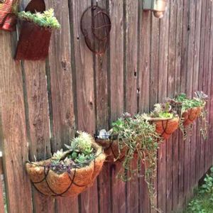 木箱を吊り下げたり、棚を作って… 狭いバルコニーに沢山の多肉を飾って自己満足(๑•̀ㅂ•́)و✧笑 100均のバーベキュー網で作ったラック(左上)簡単に作れてかなりオススメ💕 壁にまだまだGreen飾れちゃう(*`艸´)ウシシシ