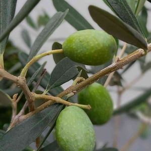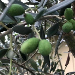 オリーブの木に実が付きました 少ししかないですけど😅 大きくなってます‼️ もう一本の方は形が違う❗️ ちょと小さ目だけど🫒🫒 収穫祭が楽しみ😋😋